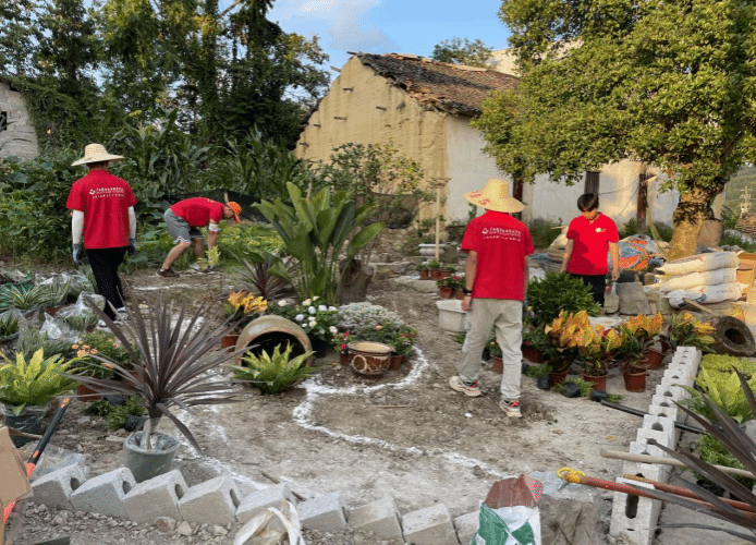 广西建院7月25日讯(建筑与规划学院 文/张悬鹏 图/黎艳清)炎炎夏日,艳阳高照。在河池市南丹县六寨村水碾屯,一群身着红色文化衫的大学生志愿者正在房前屋后紧张地忙碌着,他们是来自完美网页版建筑与规划学院大学生暑期“三下乡”社会实践“乡建使者·三微景观”实践团(以下简称“实践团”)。志愿者通过因地制宜、就地取材、就势造景,以绿色、节约、就近、就便原则,对农户“菜园、果园、花园”三微景观和村屯公共区域景观进行美化和改造升级,从而促进村容村貌治理,服务宜居宜业和美化乡村建设。