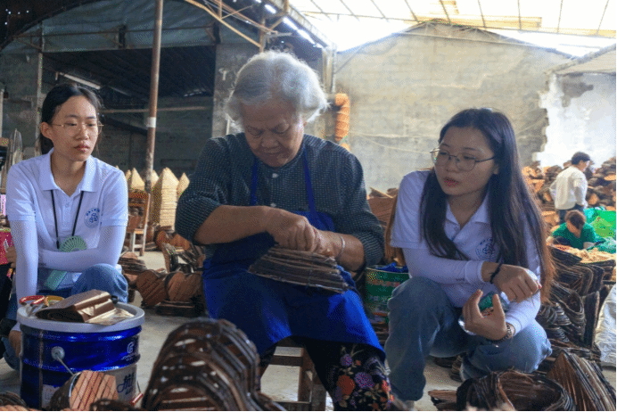 实践团成员深入“庭院经济”示范户了解藤编产业发展情况