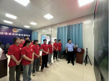 硕龙镇边境派出所民警为实践团成员介绍边境管控情况