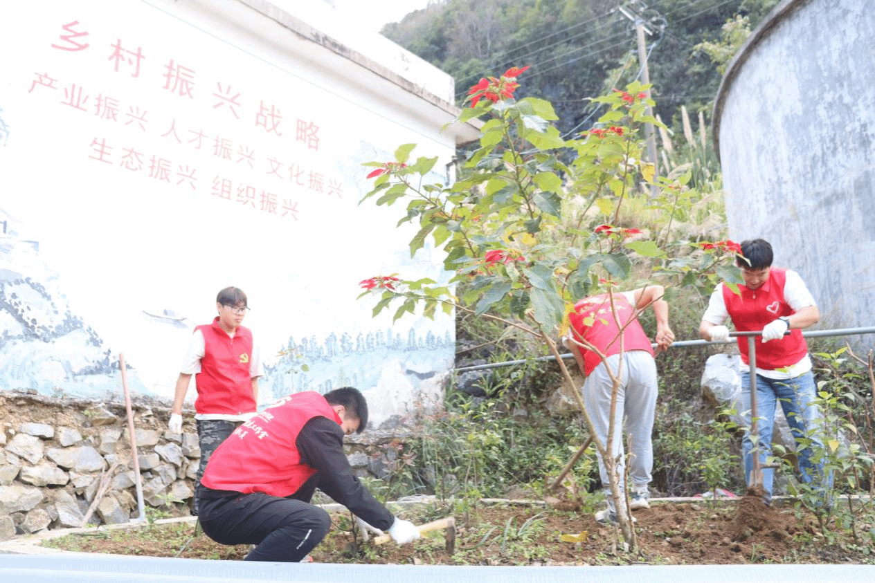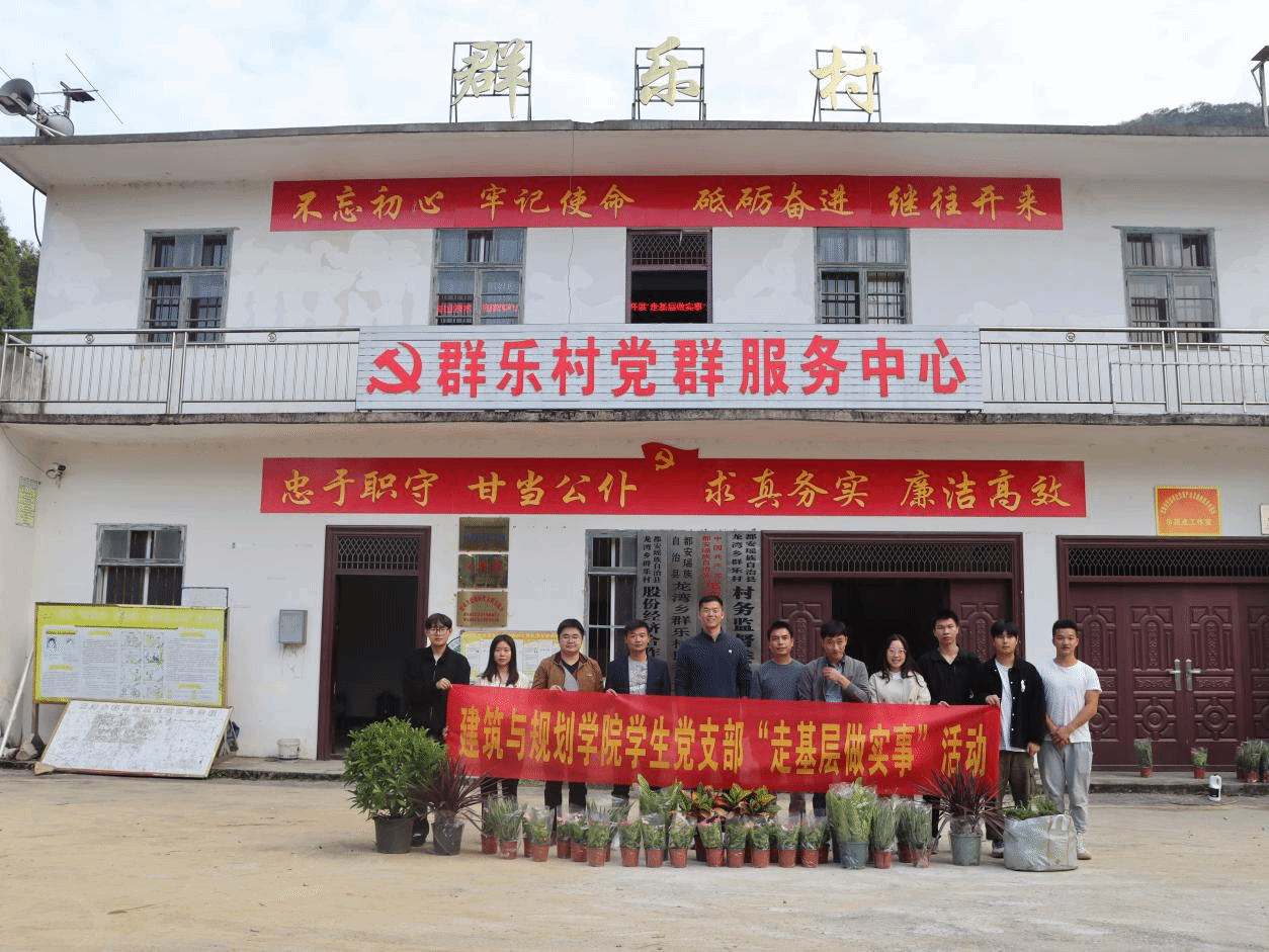 因地制宜,打造乡村小微景观。应都安县龙湾乡群乐村村委需求,学院学生党支部在村部门口打造微型景观。师生党员认真勘探现场情况,针对村部大门前空地杂草、石头较多的情况,师生们随即开展了杂物清理和翻土工作,通过测量、设计草图、定点放线、种植植物等工作将原本平平淡淡的村部一角改造成极具观赏性的微型景观。