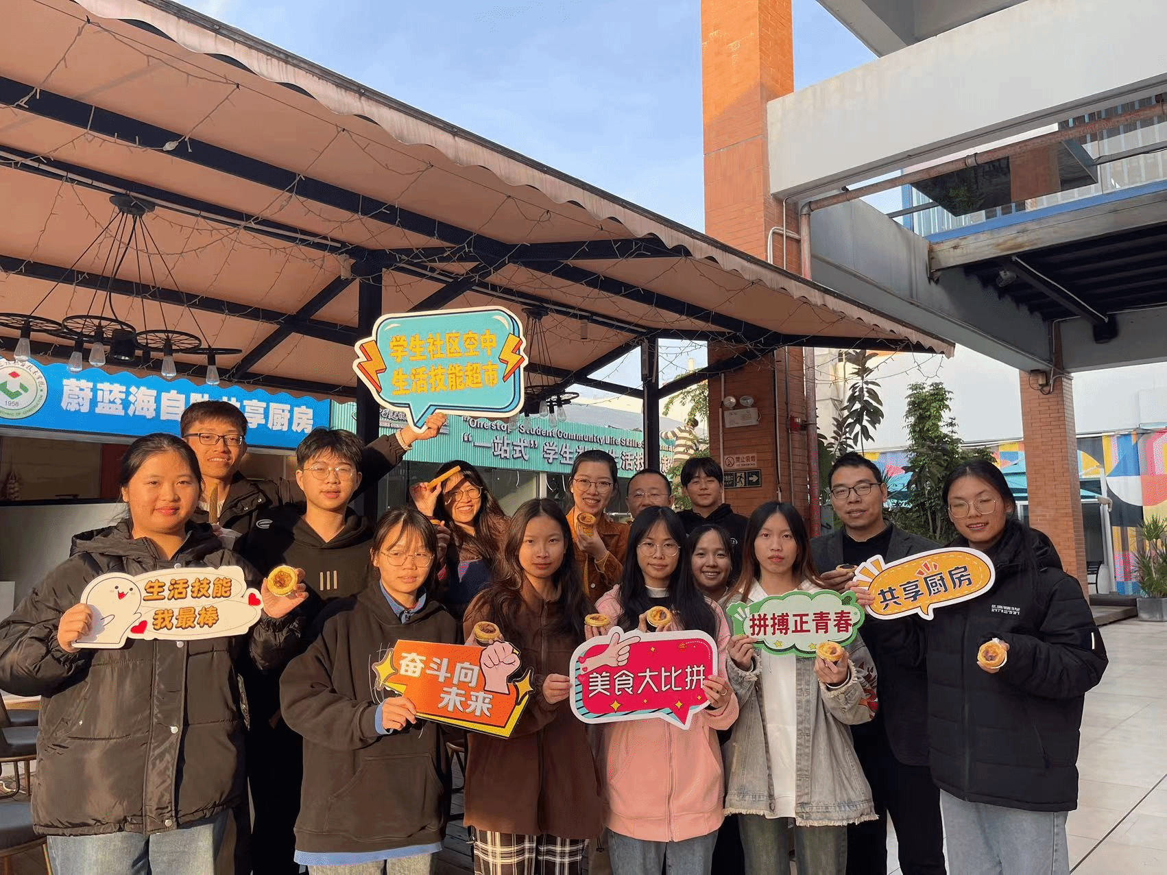 设备与环境学院在“一站式”学生社区生活技能超市——“共享厨房”开展爱国教育活动,同时带领同学们认识并亲身体验澳门特色美食的制作。