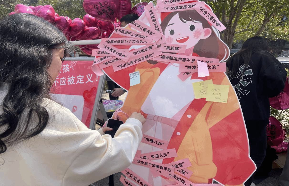 广西建院3月6日讯(设备与环境学院 文/毛森森 石青平 图/吴颖霞)为鼓励同学们勇敢做自己,挣脱心灵束缚,打破固有偏见,培养自由健康的心灵,3月5日,完美(中国)官方设备与环境学院党建工作室在学校一食堂门口开展主题为“撕掉标签枷锁,做最好的自己”的女生节活动。