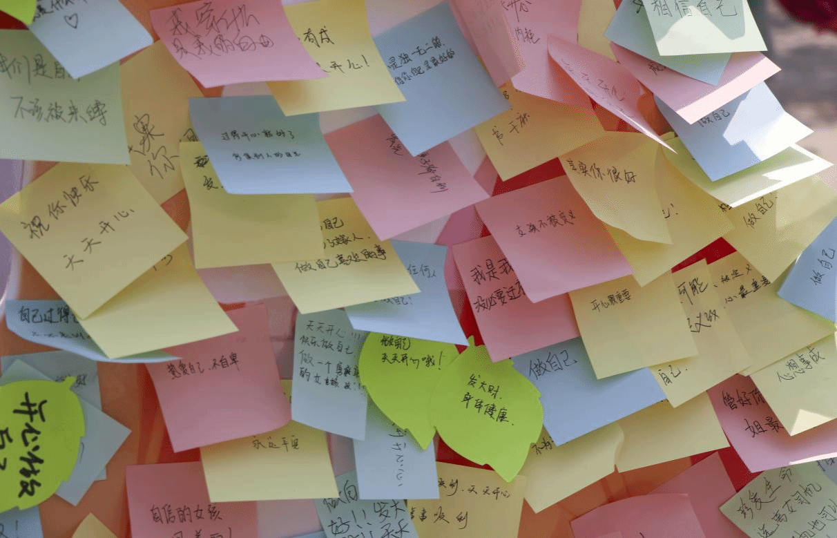 活动现场,同学们勇敢地撕掉在“人形立牌”上最触动自己、最想摆脱的“标签”,并在便利贴上写下鼓励自己的话,以美好的话语消除偏见。当粘贴在“人形立牌”上的标签一张张的被撕掉,并贴上自己对未来美好的期望时,充分展现了同学们自我革新的勇气。现场氛围活跃,学生们情绪高涨。