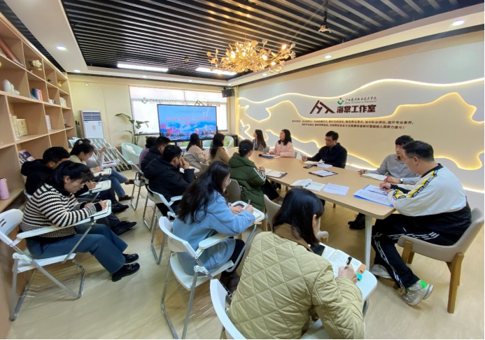 广西建院3月5日讯(管理工程学院 孙文、宋景弘)3月4日下午,管理工程学院在海棠工作室召开2024年全国教育工作会议精神专题学习会。学院党总支书记代端明主持学习会并讲话,党总支副书记郭海棠在会上发言,学院全体辅导员参加学习会。