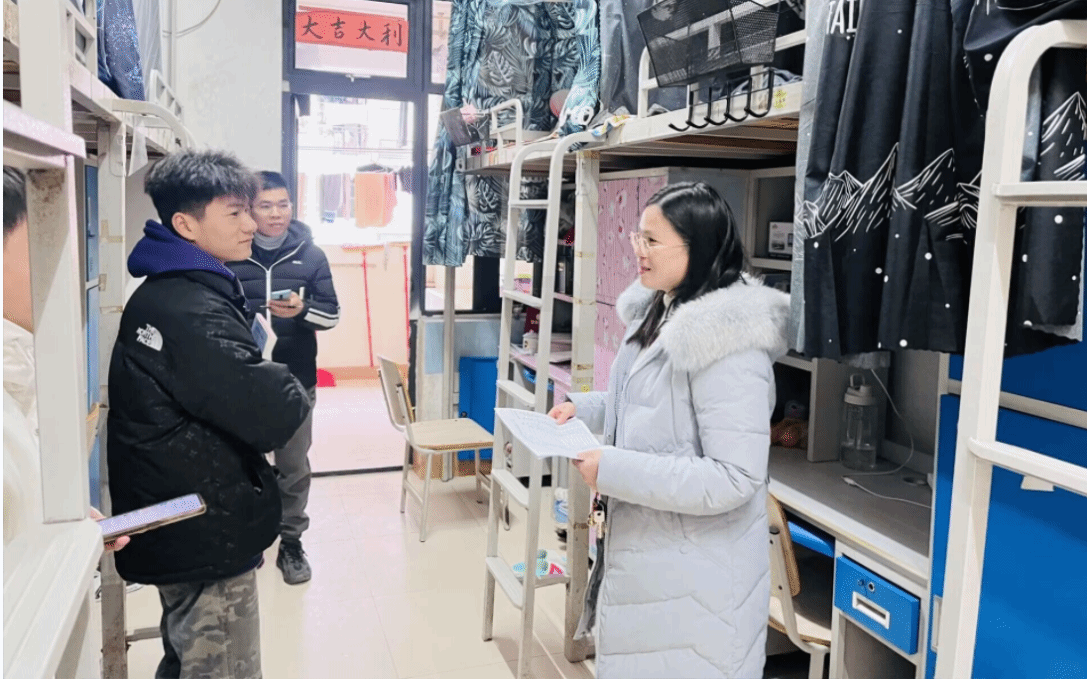 此外,检查组还对宿舍通风,门前走廊、室内地面、门窗、天花板、阳台、厕所等区域的卫生清理情况进行检查,坚持走到、看到、查到,确保不留一个盲区,不漏一个死角。“能解决的,要求现场解决完成;未能现场解决的,要对整改情况持续跟进。”管理工程学院党总支书记代端明表示,要以强烈的责任感和使命感,把校园安全稳定网再织牢织密,增强“安全第一,预防为主”的意识。