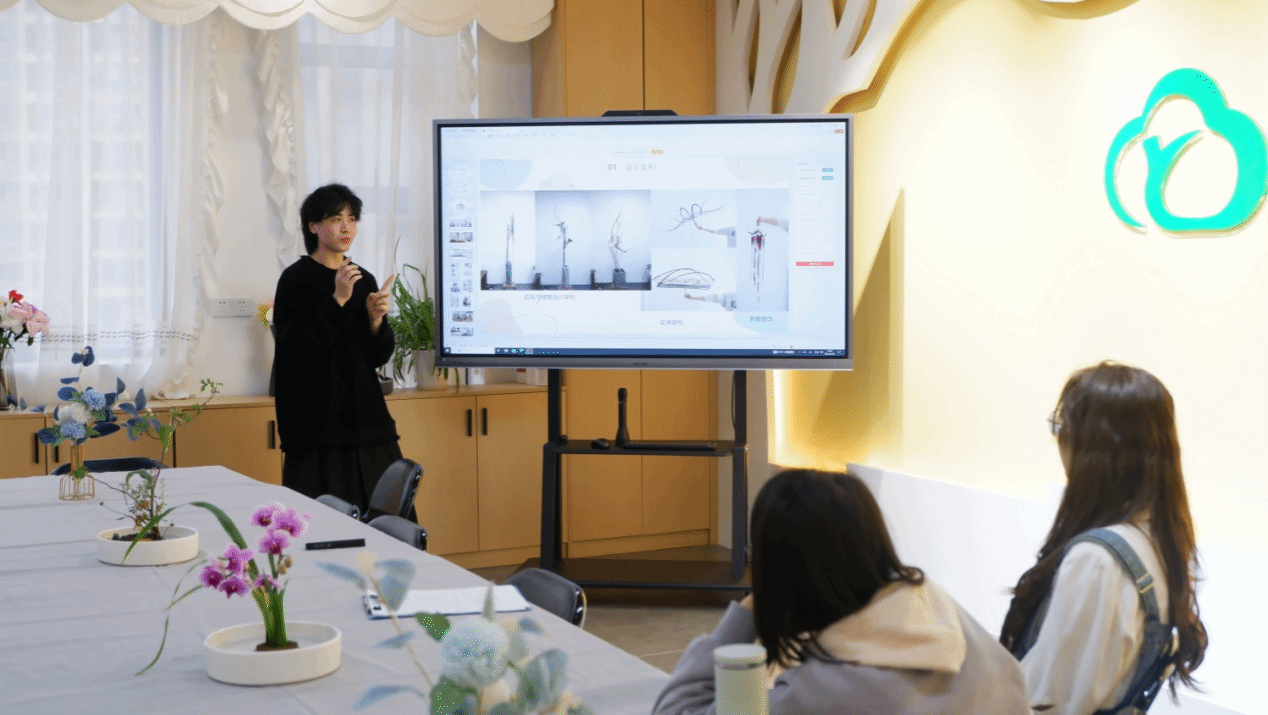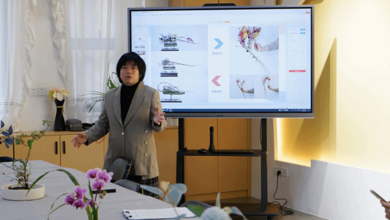 校内指导老师易敏、朱秋敏、陈璟如等三位老师从以赛促学、赛教融合的角度,鼓励同学们积极参赛,提升技能,立志成长为高素质技术技能型人才。资深插花大师、校外企业指导老师杨雨轩分享了自身机缘巧合跨行花艺界的故事,鼓励同学们保持热爱和激情,开辟一片更加广阔的新天地。
