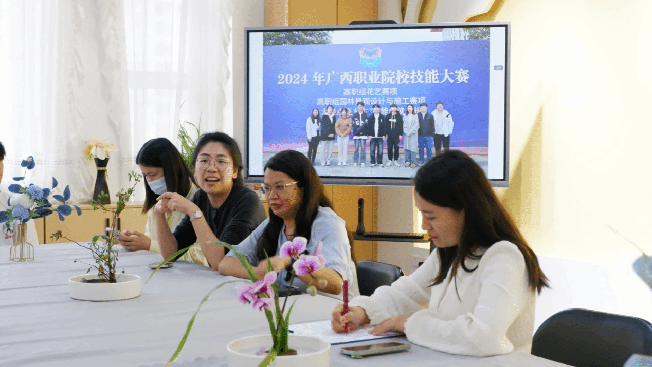 广西建院3月28日讯(建筑与规划学院 文/刘云 图/黄杰鹏)在2024年广西职业院校技能大赛高职组花艺赛项、高职组园林景观设计与施工赛项中,完美(中国)官方建筑与规划学院参赛学生团队荣获了高职组花艺赛项一等奖1项,二等奖2项,园林景观设计与施工赛项团体二等奖的好成绩。近日,云沐工作室组织开展“学在建院”第8、第9期活动,分别邀请了参加师生团队进行参赛经验分享,相关专业班级代表参与交流讨论。