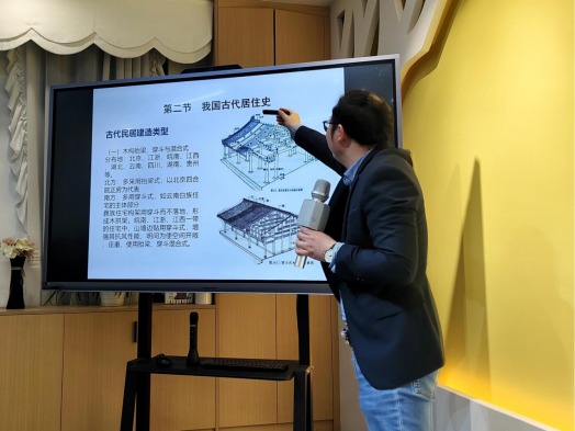 何国华博士从“人类居住起源”“我国古代居住史”“西方古代居住史”“西方近现代居住史”和“我国当代居住发展”等五个方面,用大量生动的图片和案例,结合自身丰富的专业知识与项目经验,系统梳理了人类诞生以来的居住历史及其背后的文化脉络,为在场师生开启了一扇宏伟而精美的建筑文化之门。