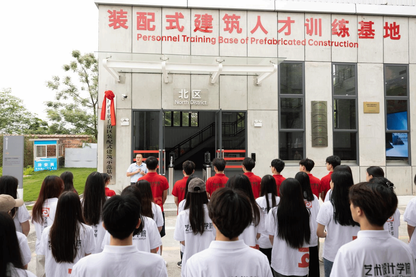 艺术设计学院青年团员认真倾听装配式人才训练基地工作人员讲解