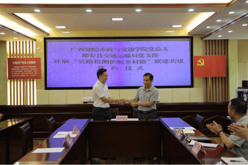都安县交通局领导对学院的专业建设和人才培养模式表示高度认可。他表示,市政与交通学院“公路检测护航乡村路”乡村振兴实践团近三年在都安开展的路面平整度检测、钢质护栏检测、桥梁检测正是交通局农村公路建设、管理、运营、养护工作中的重要一环,也启发了支部“如何立足实际,发挥优势,因地制宜树立党建品牌,为乡村振兴注入新动力”的思考。