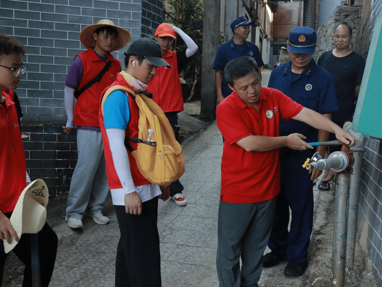 实践中,团队师生发挥学校“双高”专业群优势,将专业知识运用于实践,联合融水苗族自治县洞头镇政府、拱洞乡政府、南宁市聚焦社会服务中心、融水消防救援大队等单位,开展消防实践活动,通过宣讲消防知识、消防管网检测、入户排查隐患等形式,助力“苗寨消防守护计划”,用青春力量守护苗寨平安。