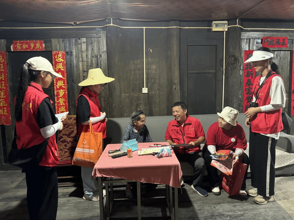 在村委工作人员的指引下,实践团队与消防救援大队走村入户,帮助村民排查家庭用电线路、插座、开关等设备的绝缘情况和安全性能。据统计,累计登记排查167户,协助村民换插座、整改线路等56户。其中,拱洞村有一户留守老人家中用电插座漏电。发现这一情况后,团队成员马上更换插座,消除安全隐患,确保老人安全。本次隐患排查和维修活动得到村民们的认可和赞扬。“你们顶着这么大的太阳,帮我修好了插座,实在太感谢你们了。”拱洞村村民潘奶奶开心地说。