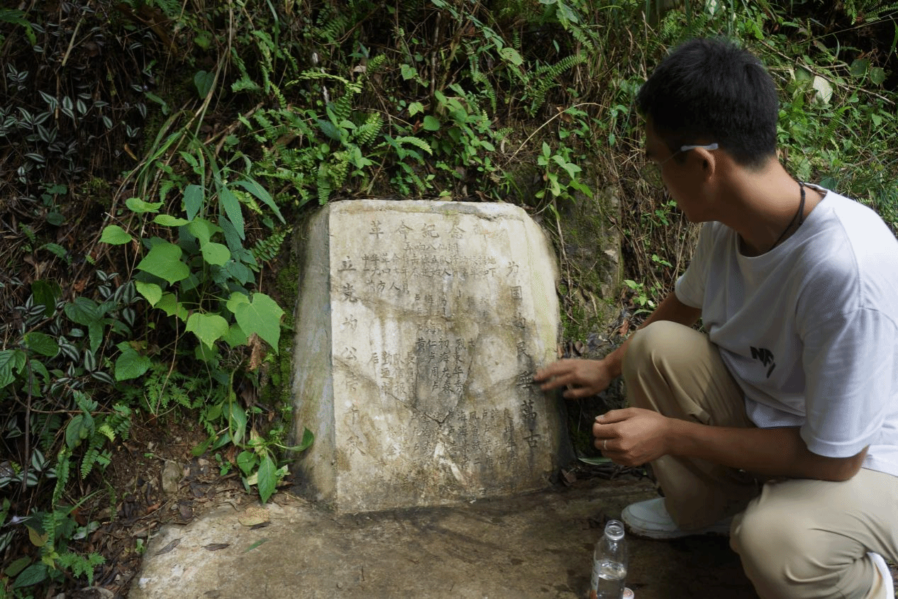 寻弄响八仙洞革命足迹,承红色薪火相传。从甘湾村返回都安县城的路上,实践团特意驱车前往弄响八仙洞——中华革命游击独立队活动根据地旧址探寻革命足迹,缅怀革命先烈。实践团成员对革命纪念碑擦拭打扫、整理周围环境,向参加1947年革命游击队的革命烈士表达无限的哀思和缅怀之情。革命纪念碑两侧“立党为公传千秋 为国为民垂万古”的碑文激励着实践团成员们要把革命烈士的革命精神传承下去,不忘初心,砥砺前行,积极把对革命先烈的崇高敬意和感恩之心转化为行动,以更加奋进的姿态,投入到学习工作中。