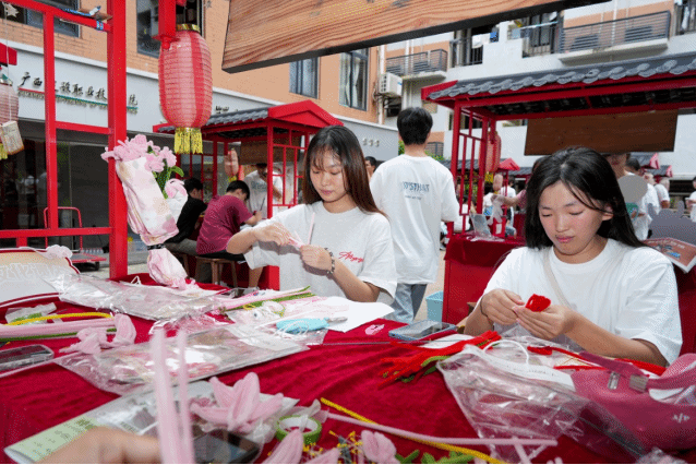 广西建院9月17日讯(管理工程学院 文/封炫妃 图/宋景弘 黄铁华)感悟非遗之美,传承文化之根。9月20日,管理工程学院在学校“一站式”学生社区举办了以“礼敬中华优秀传统文化”为主题的非遗市集活动,活动吸引众多师生和非遗文化爱好者参与,共同感受非遗之美。