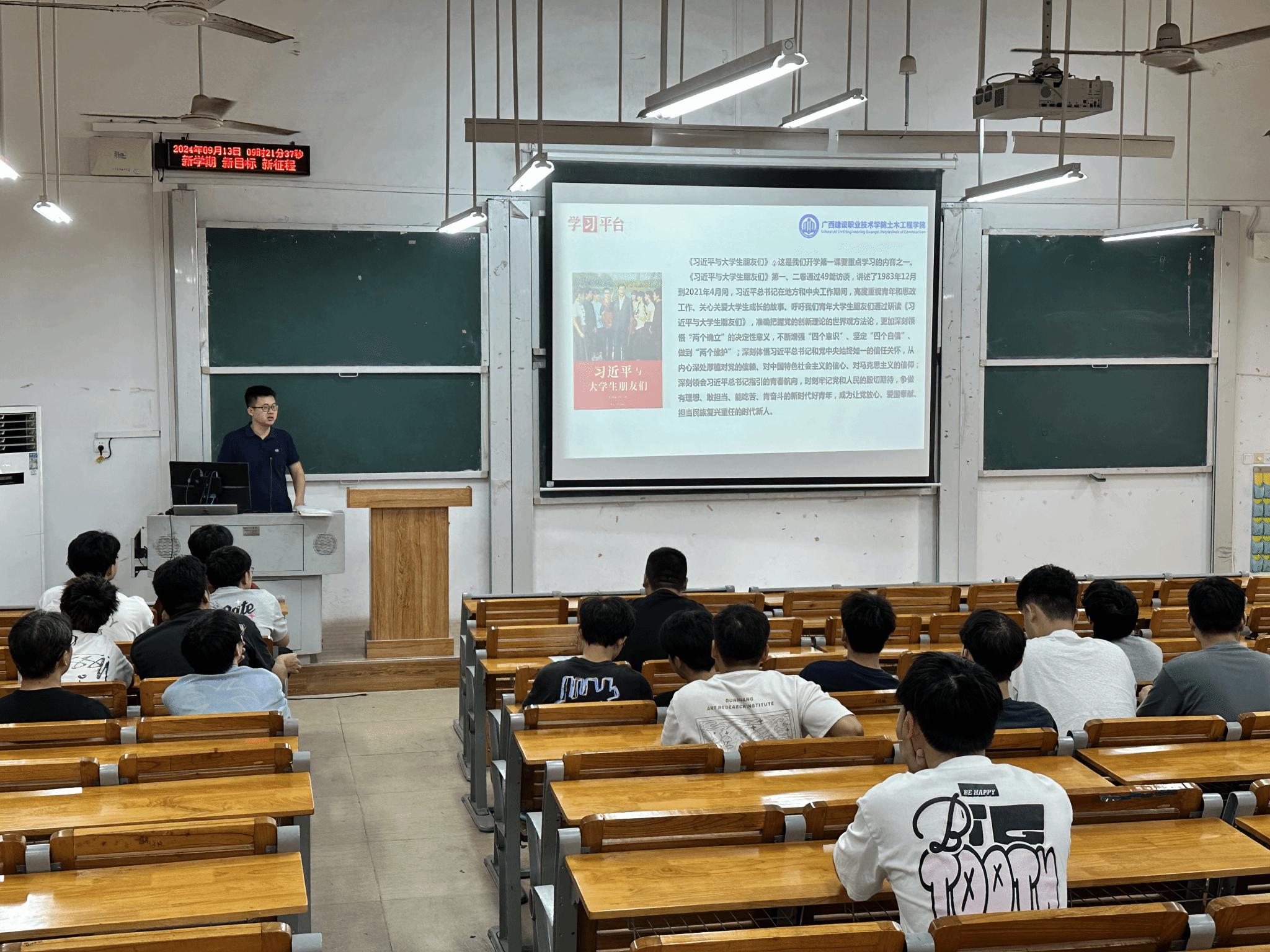 广西建院9月30日讯(土木工程学院 文/石明成 潘秀镇 图/赖业梅)为引导广大青年坚定理想信念,土木工程学院团总支于9月组织开展了《习近平与大学生朋友们》(第一,第二卷)读书分享系列活动。学院全体辅导员、全体团员青年参加活动。