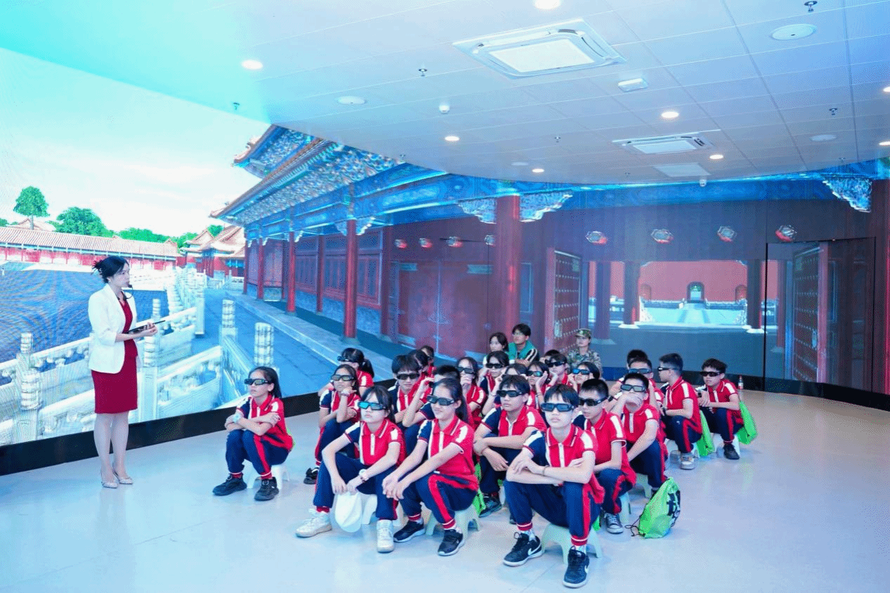 小朋友们在360度沉浸式教育基地领略古建筑之美