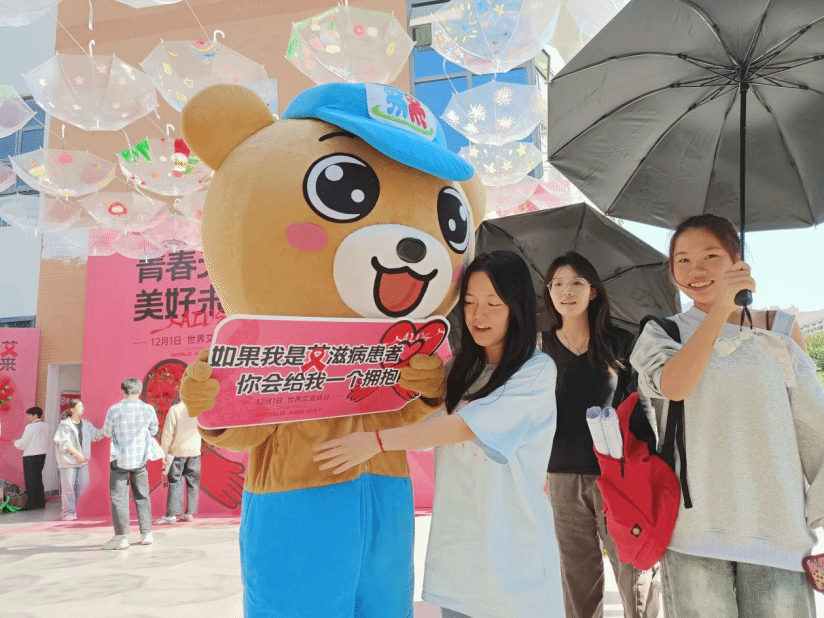 “消除歧视·爱的熊抱”环节中,通过与 “艾滋病患者” 人偶拥抱互动,引导同学们正确了解艾滋病传播方式以及科学防治艾滋病的方法,呼吁同学们给予艾滋病患者群体的关心与爱护,消除因误解而带来的歧视与排斥行为。通过这场互动环节,让学生们更加理解和包容艾滋病患者群体,共同营造一个温暖、和谐的社会环境。