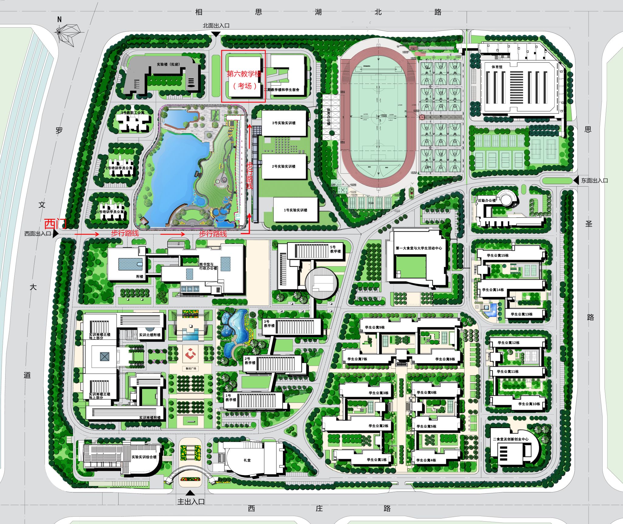 二、请各位考生根据指定路线到达考场,以免耽误考试时间(详见指示图)。