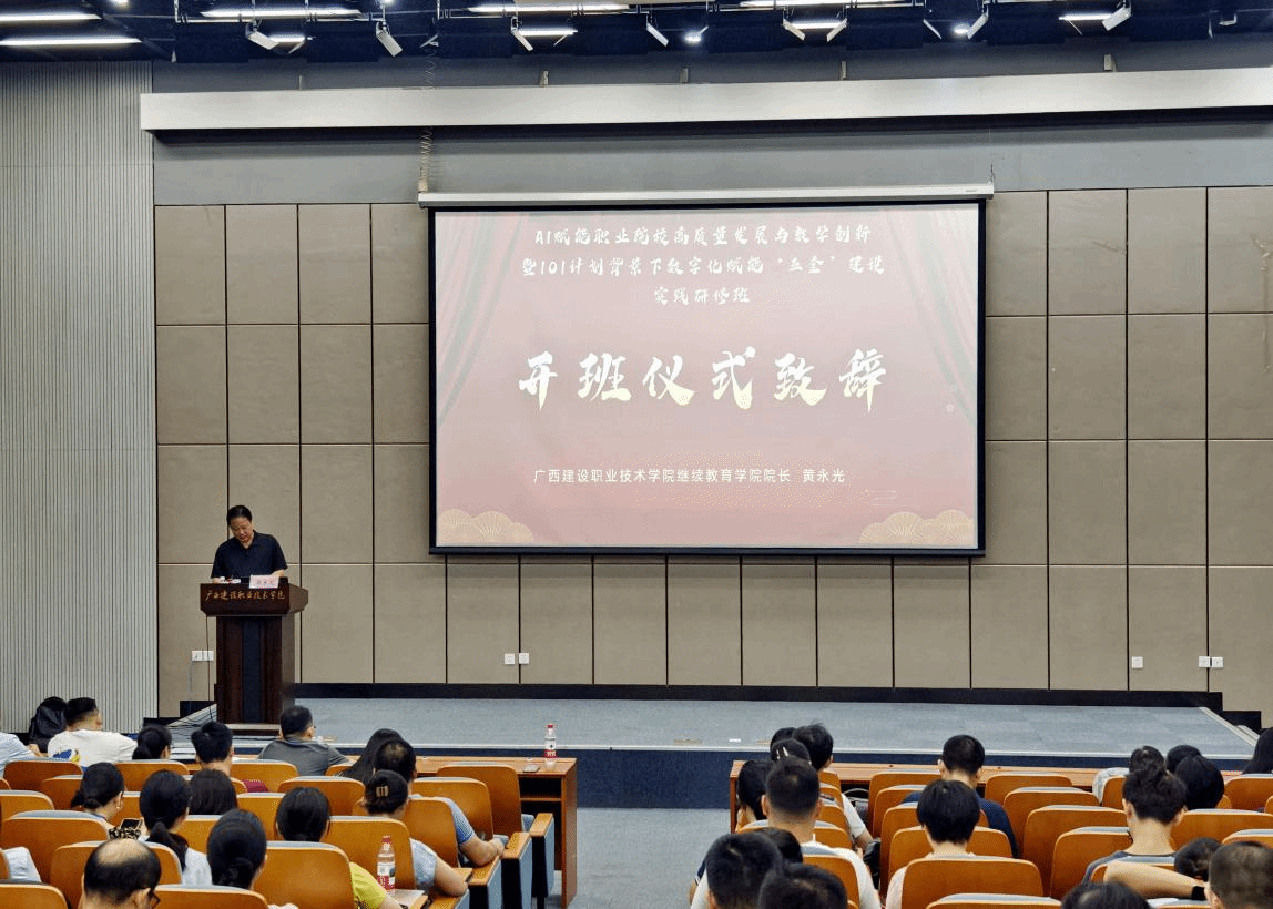开班仪式上,继续教育学院黄永光院长代表承办单位对各位专家和参训老师表示热烈欢迎。他指出,在数字化浪潮席卷而来的今天,推动“AI+职业教育”的结合,利用数字技术提升教育质量,是时代赋予的使命,也是职业教育高质量发展的内在要求。他对全体参训学员提出了三点希望:一是把握前沿,学深悟透;二是加强交流,互鉴共进;三是学以致用,知行合一,共同为培养更多高素质技术技能人才作出新的更大贡献。