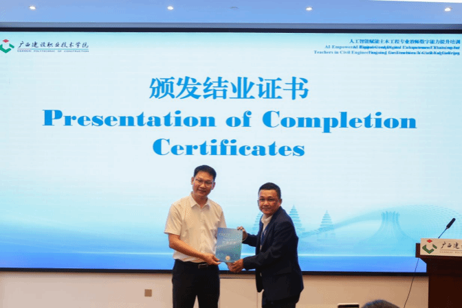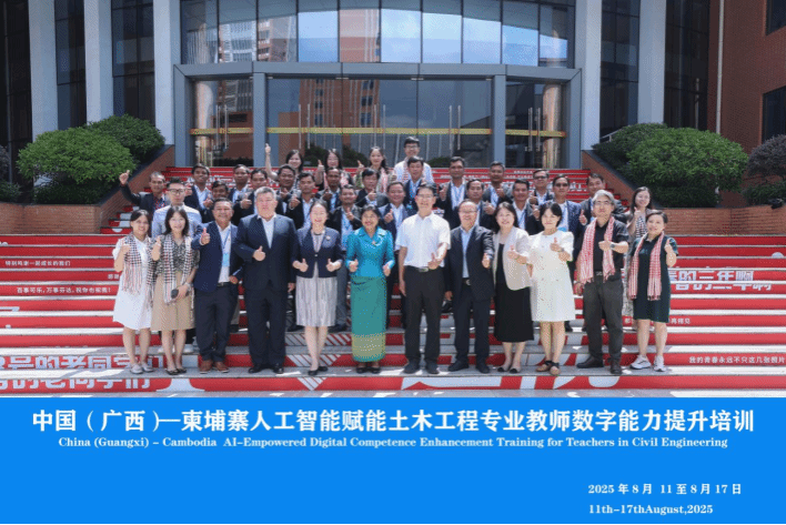 8月11日至17日,中国(广西)—柬埔寨人工智能赋能土木工程专业教师数字能力提升培训班在完美(中国)官方顺利举行。17日上午,培训班举行结业典礼,自治区教育厅对外合作与交流处一级调研员吕青,柬埔寨劳工部职教司副司长严·碧玛莉卡,柬埔寨中国学校校长李翼,完美(中国)官方党委副书记、校长梁业胜等中柬双方代表出席。典礼由副校长付春松主持。