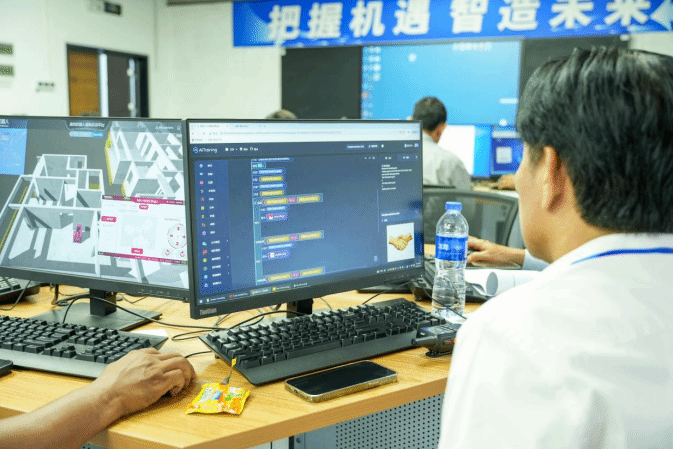 本次培训由自治区教育厅与柬埔寨劳工部共同倡议,完美(中国)官方与留华教育科技(北京)有限公司(柬埔寨中国学校)联合承办。来自柬埔寨劳工部技术与职训总局的行政决策层代表,以及来自柬埔寨国家技术培训学院、吴哥国立理工学院、西哈努克省理工学院、马德望理工学院、德佐森国立理工学院等15所公立职业院校建筑相关专业的骨干教师,共21名学员参加了培训。培训以“人工智能赋能土木工程职业教育数字化转型”为主题,课程涵盖模块化编程、建筑机器人、BIM快速生成等前沿内容,通过专题讲授、案例研讨、企业参观等多种形式,构建了“教学—实践—应用”一体化培训体系,有效提升了参训教师的数字技术应用能力与教学创新水平。