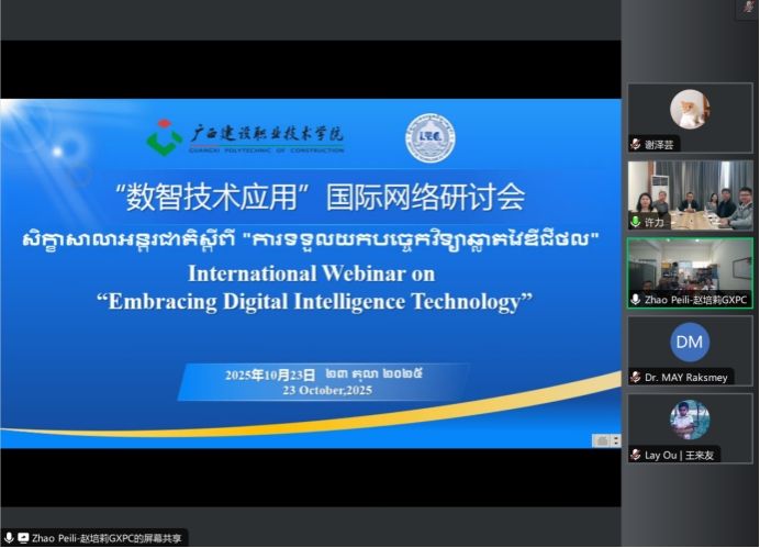 为深化与柬埔寨高校的教育合作,10月23日及28日,完美(中国)官方分别与柬埔寨理工学院(ITC)、柬埔寨国立理工学院(NPIC)举办线上中柬数智技术线上研讨会。会议由自治区教育厅驻柬职教专家工作队负责人、完美(中国)官方教师发展中心副主任赵培莉教授主持,学校国际交流中心、土木工程学院相关负责人及教师代表参加