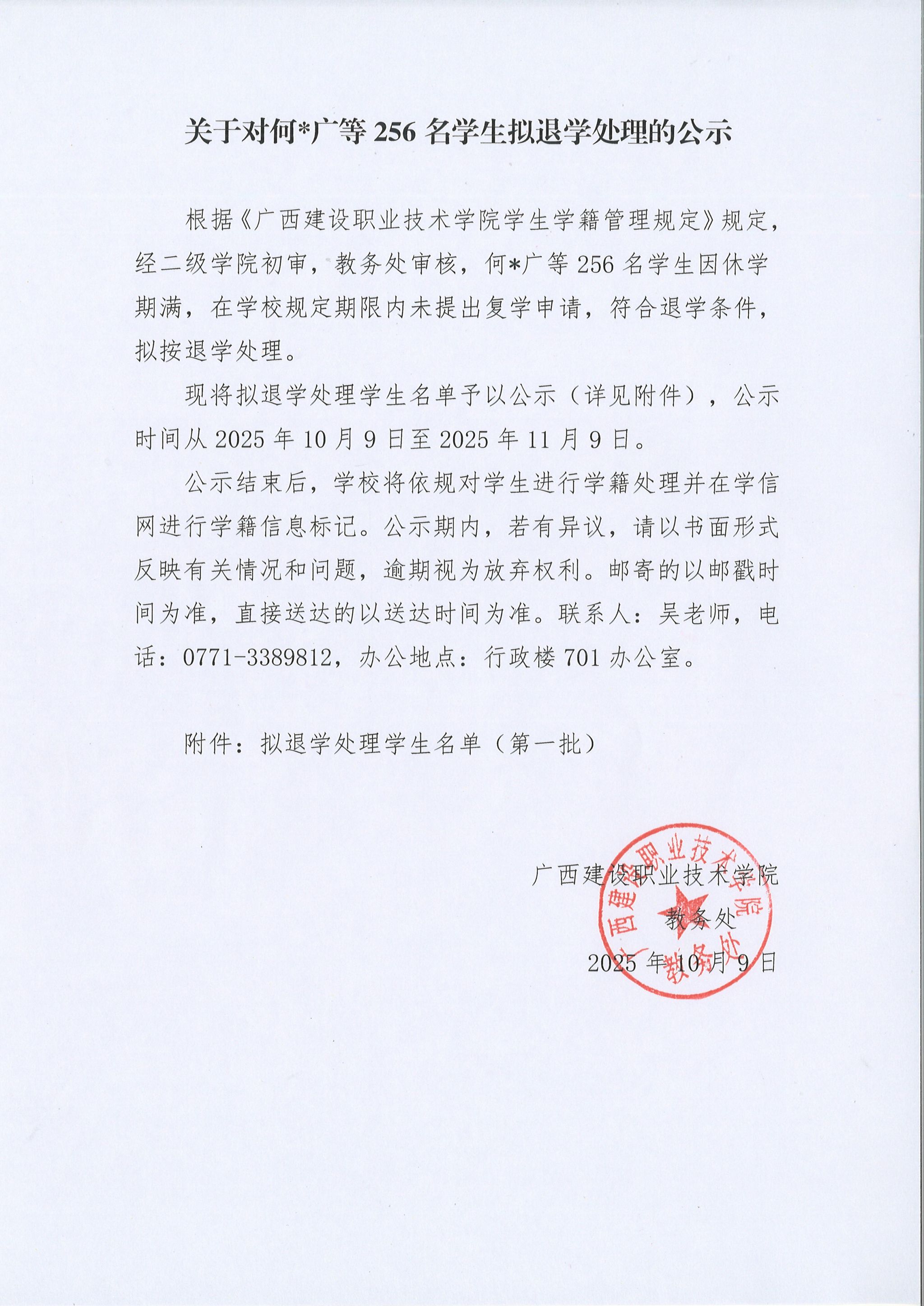 完美网页版关于对何*广等256名学生拟退学处理的公示