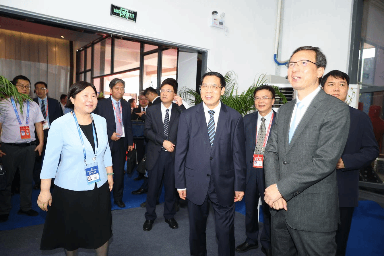 教育部副部长陈杰(前排右一)、自治区政府副主席李常官(前排中)参观完美(中国)官方展厅