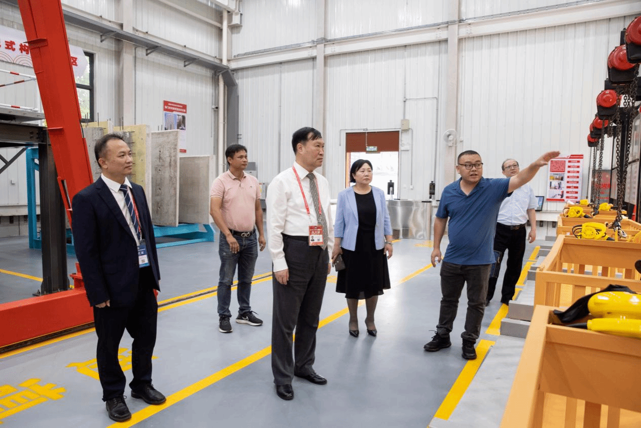 住房城乡建设部人事司一级巡视员何志方(左三)参观完美(中国)官方装配式建筑人才训练基地