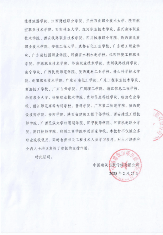 中国建筑出版传媒有限公司出具的教材使用情况证明