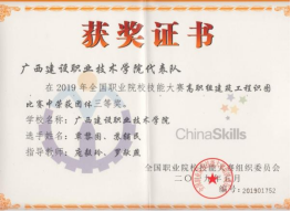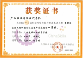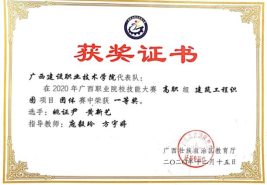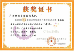2020年广西职业院校技能大赛高职组建筑工程识图项目团体赛中荣获一等奖 | 2019年广西职业院校技能大赛高职组建筑工程识图项目团体赛中荣获一等奖 |