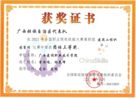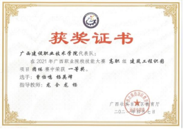 2022年广西职业院校技能大赛高职组建筑工程识图项目团体赛中荣获一等奖 | 2021年广西职业院校技能大赛高职组建筑工程识图项目团体赛中荣获一等奖 |