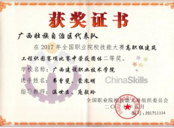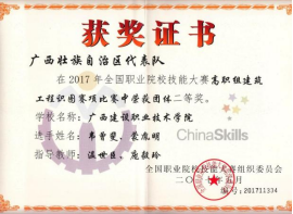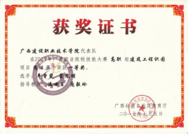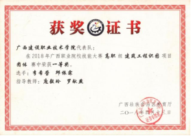 2018年广西职业院校技能大赛高职组建筑工程识图项目团体赛中荣获一等奖 | 2017年广西职业院校技能大赛高职组建筑工程识图项目团体赛中荣获一等奖 |