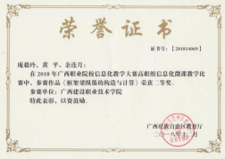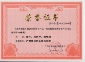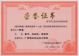 2017年《梁集中标注》微课荣获第十七届广西高校教育教学信息化大赛评比一等奖 | 2016年《梁的钢筋》微课获第十六届广西高校教育教学软件应用大赛评比一等奖 |