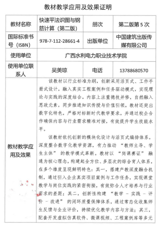4.2.3 广西水利电力职业技术学院教材应用及效果证明