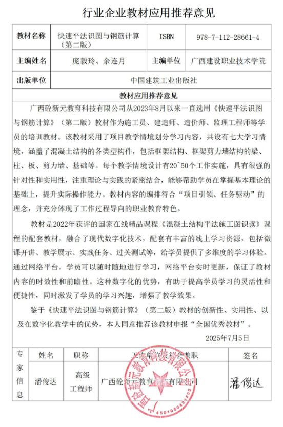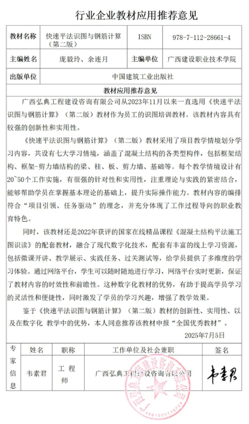 4.3.5 广西弘典工程建设咨询有限公司教材应用推荐意见