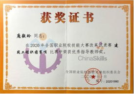 2020年全国职业院校技能大赛改革试点赛高职组“建筑工程识图赛项”获国家级一等奖(排名第一) | 在2020年全国职业院校技能大赛改革试点赛“建筑工程识图赛项”比赛中荣获优秀指导教师奖 |