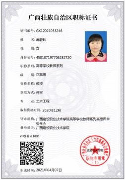 庞毅玲获“广西教学名师”称号 | 庞毅玲高级“双师型”教师资格证书 |