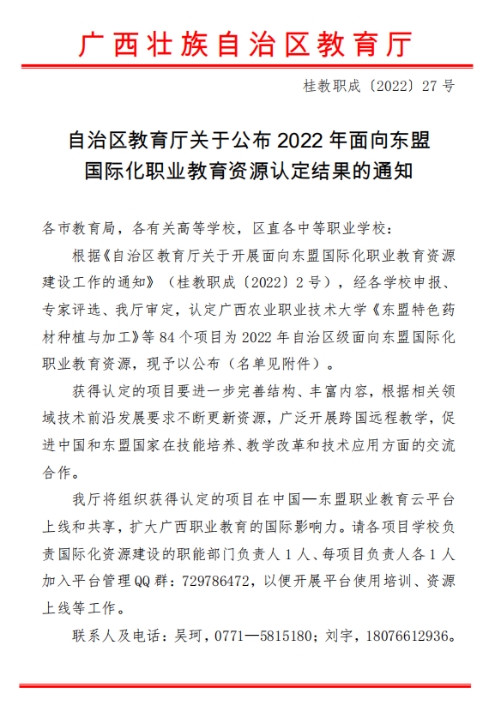 2022年面向东盟国际化职业教育资源