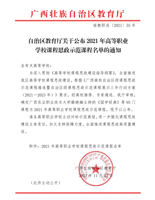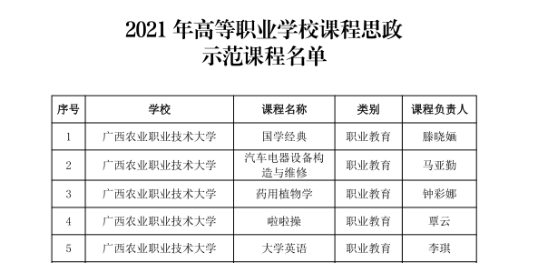 2021年高等职业学校课程思政示范课程