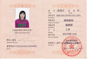 余连月副教授职称证书 | 余连月高级工程师职称证书 |