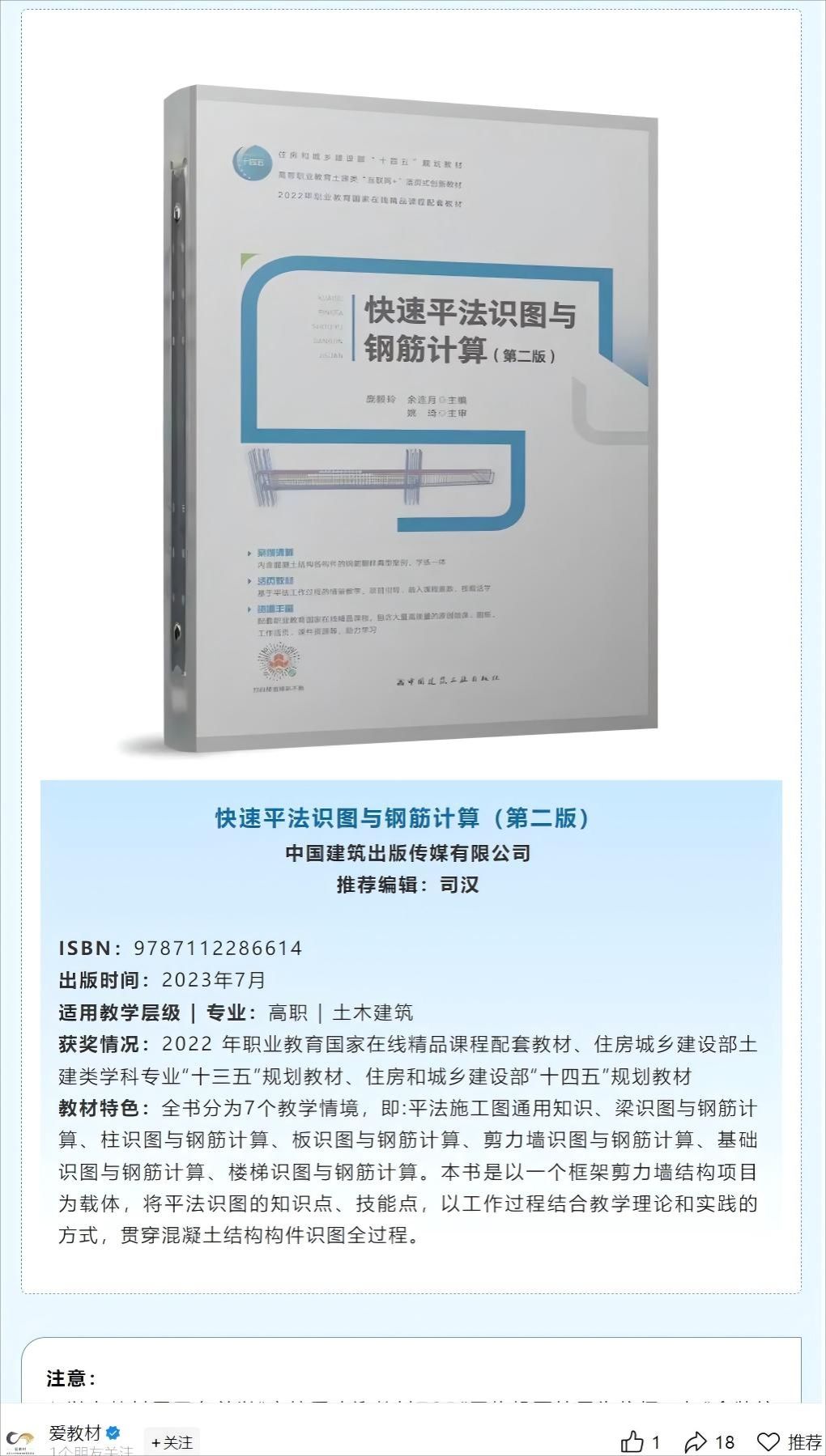 主编教材一:快速平法识图与钢筋计算 | 主编教材二:快速平法识图与钢筋计算(第二版) |