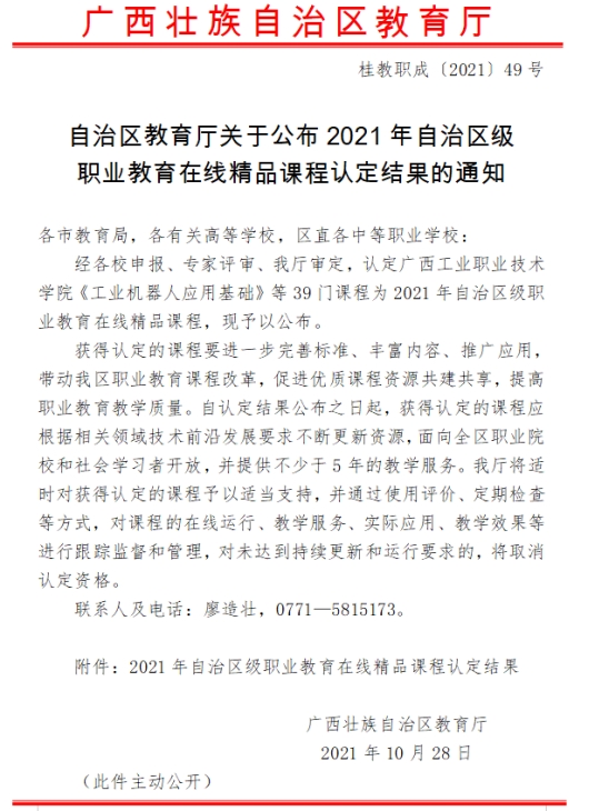 2021年自治区级职业教育在线精品课程
