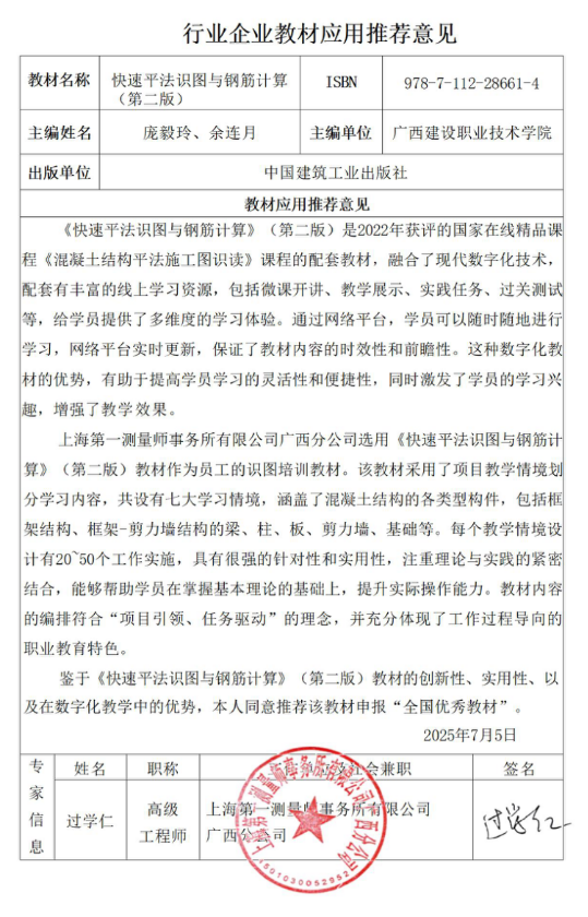 4.3.4 上海第一测量师事务所有限公司广西分公司教材应用推荐意见