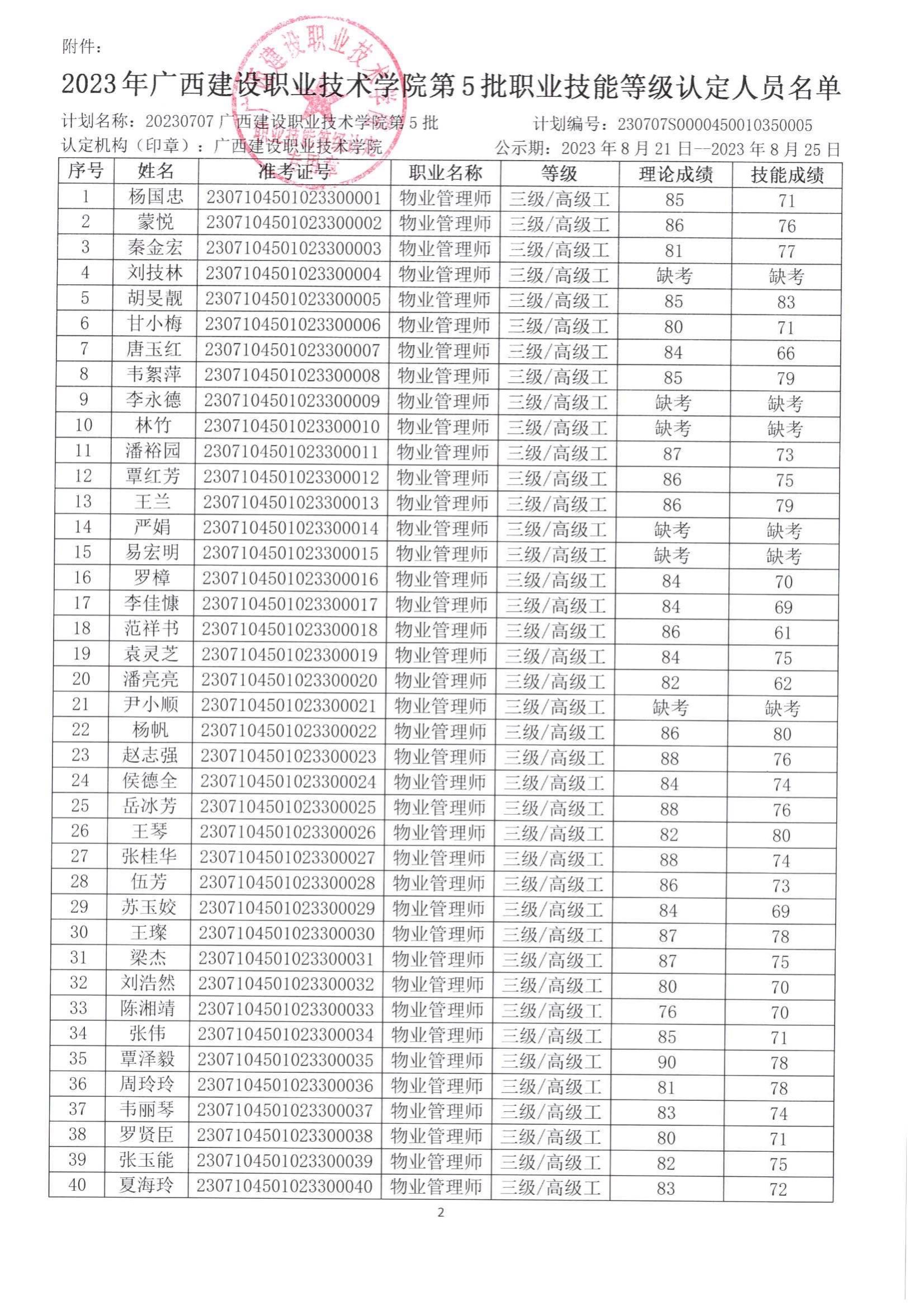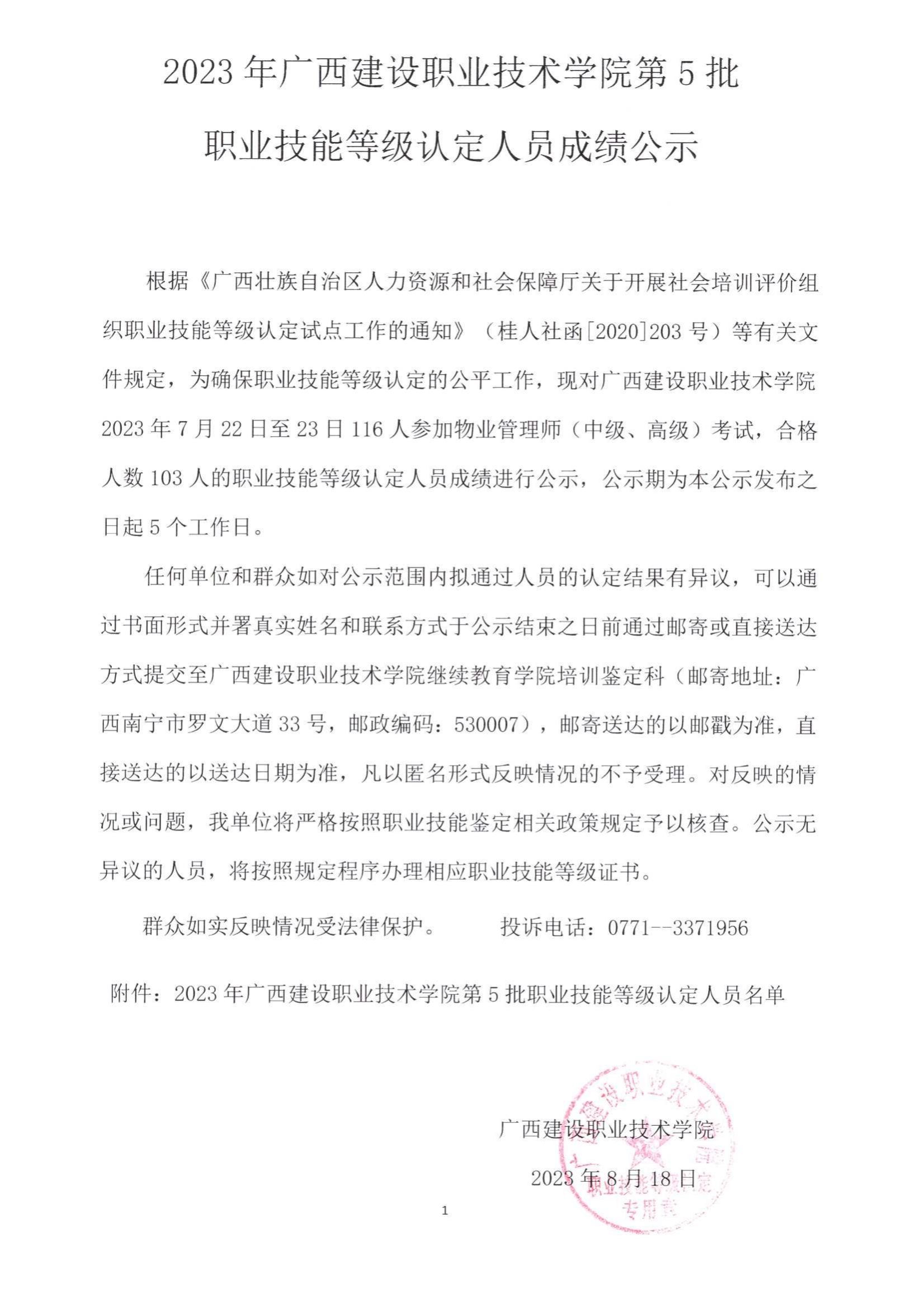 培训信息 当前位置: 首页 >> 培训信息 >> 正文 2023年完美网页版第5批职业技能等级认定人员成绩公示 发布日期:2023-08-21 点击: 附件【2023年完美网页版第5批职业技能等级认定人员成绩公示.pdf】已下载次