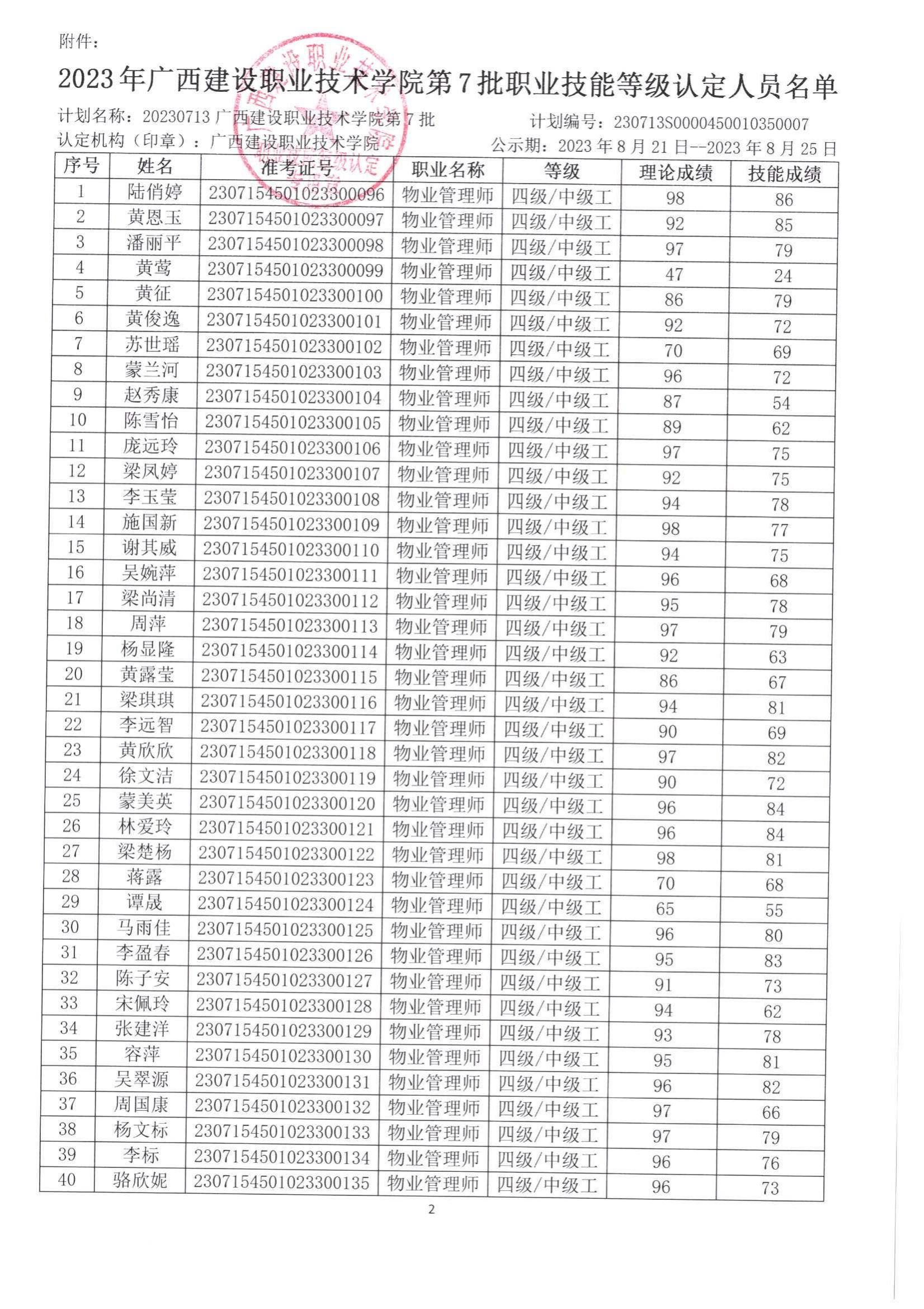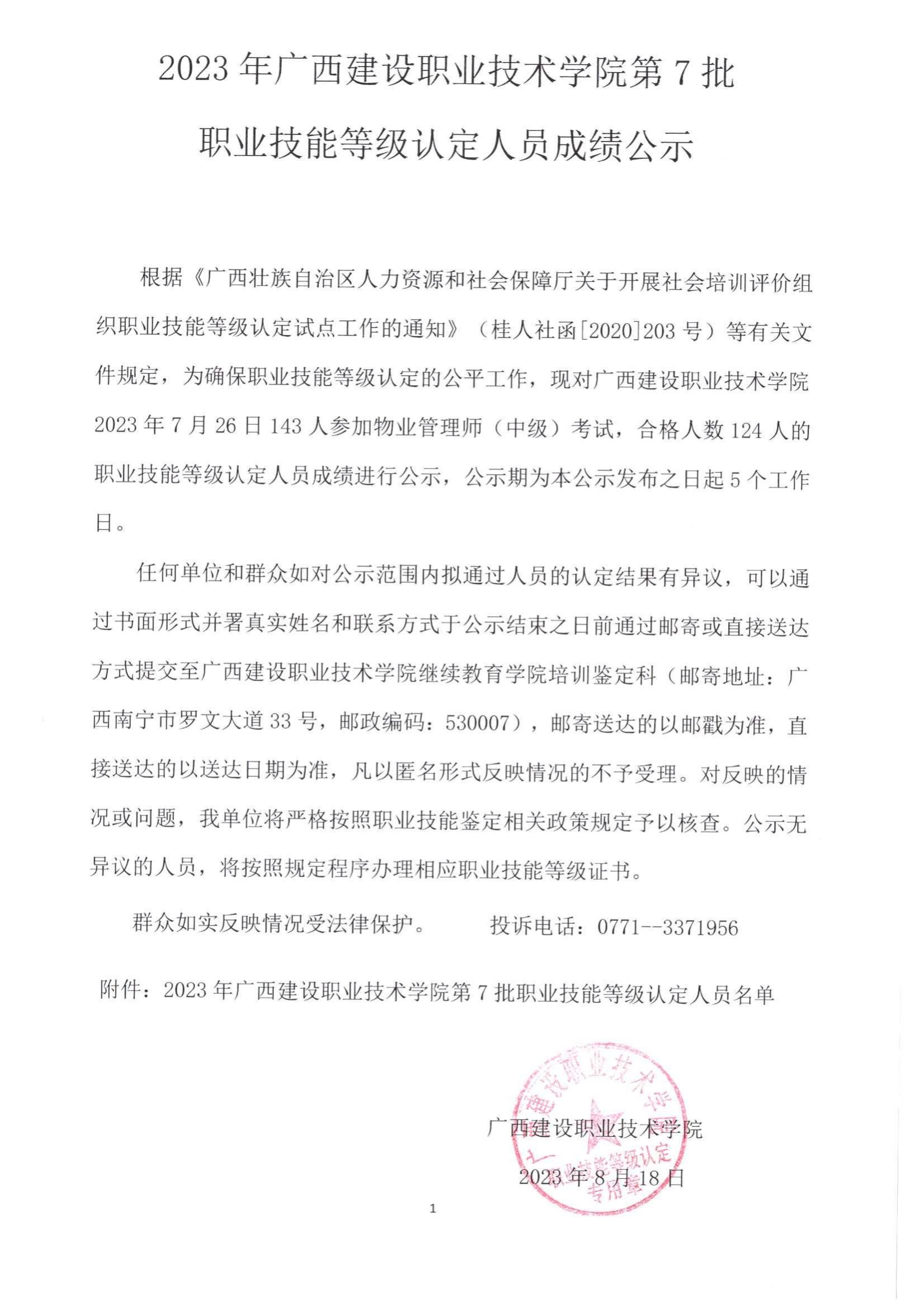 培训信息 当前位置: 首页 >> 培训信息 >> 正文 2023年完美网页版第7批职业技能等级认定人员成绩公示 发布日期:2023-08-21 点击: 附件【2023年完美网页版第7批职业技能等级认定人员成绩公示.pdf】已下载次