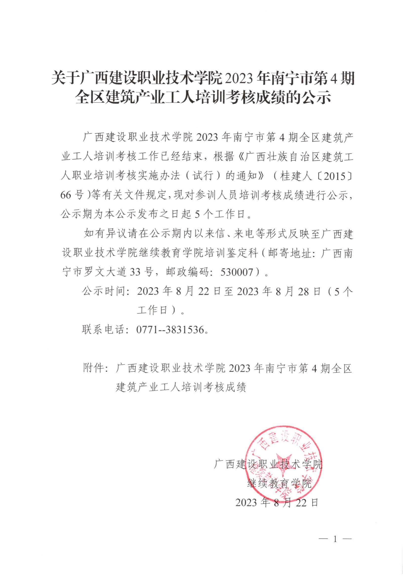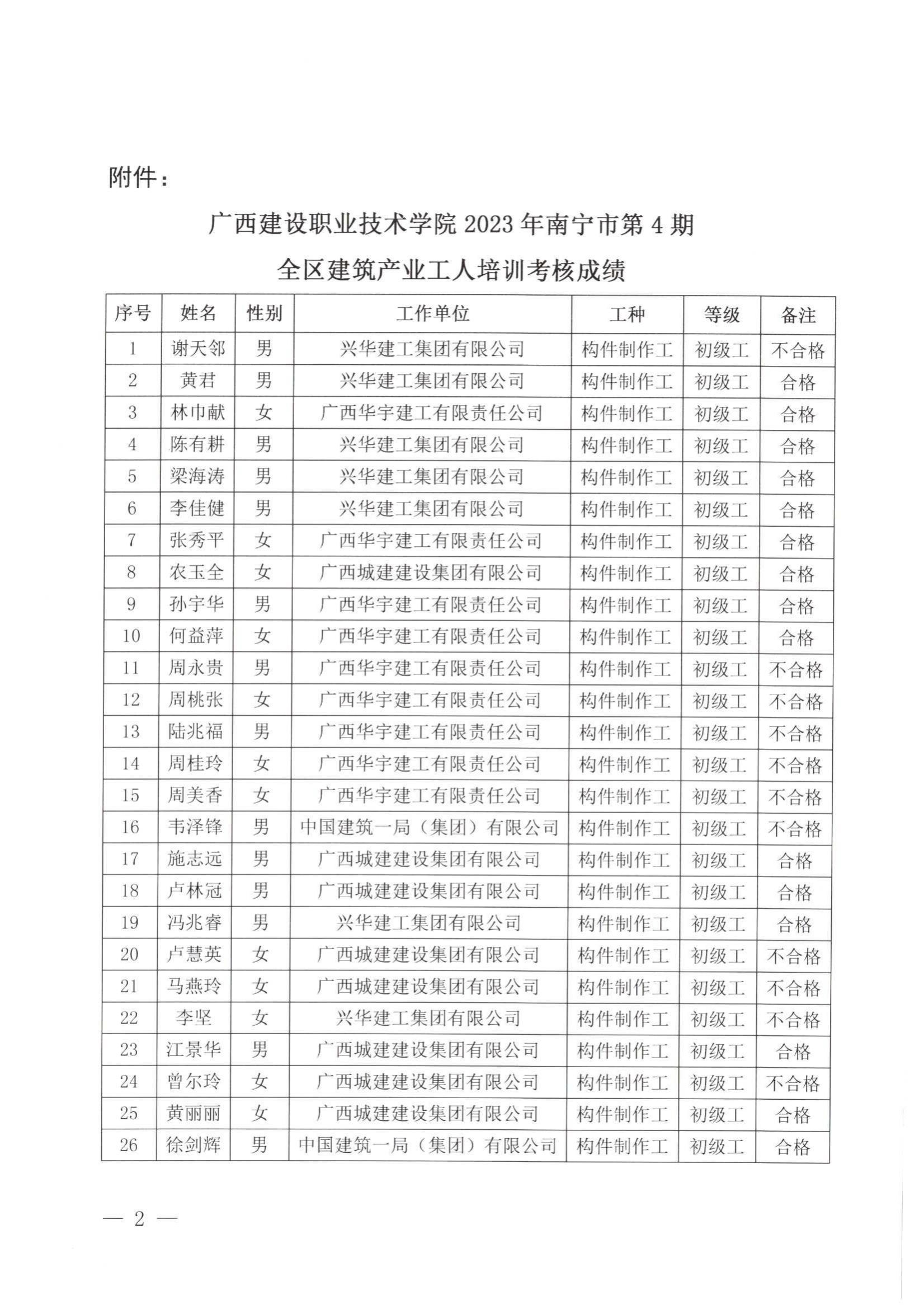 培训信息 当前位置: 首页 >> 培训信息 >> 正文 关于完美网页版2023年南宁市第4期全区建筑产业工人培训考核成绩的公示 发布日期:2023-08-22 点击: 附件【关于完美网页版2023年南宁市第4期全区建筑产业工人培训考核成绩的公示.pdf】已下载次