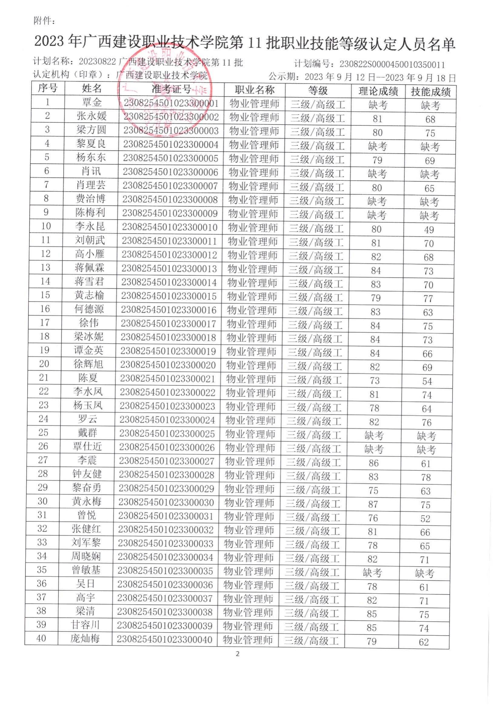 培训信息 当前位置: 首页 >> 培训信息 >> 正文 2023年完美网页版第11批职业技能等级认定人员成绩公示 发布日期:2023-09-12 点击: 附件【2023年完美网页版第11批职业技能等级认定人员成绩公示.pdf】已下载次
