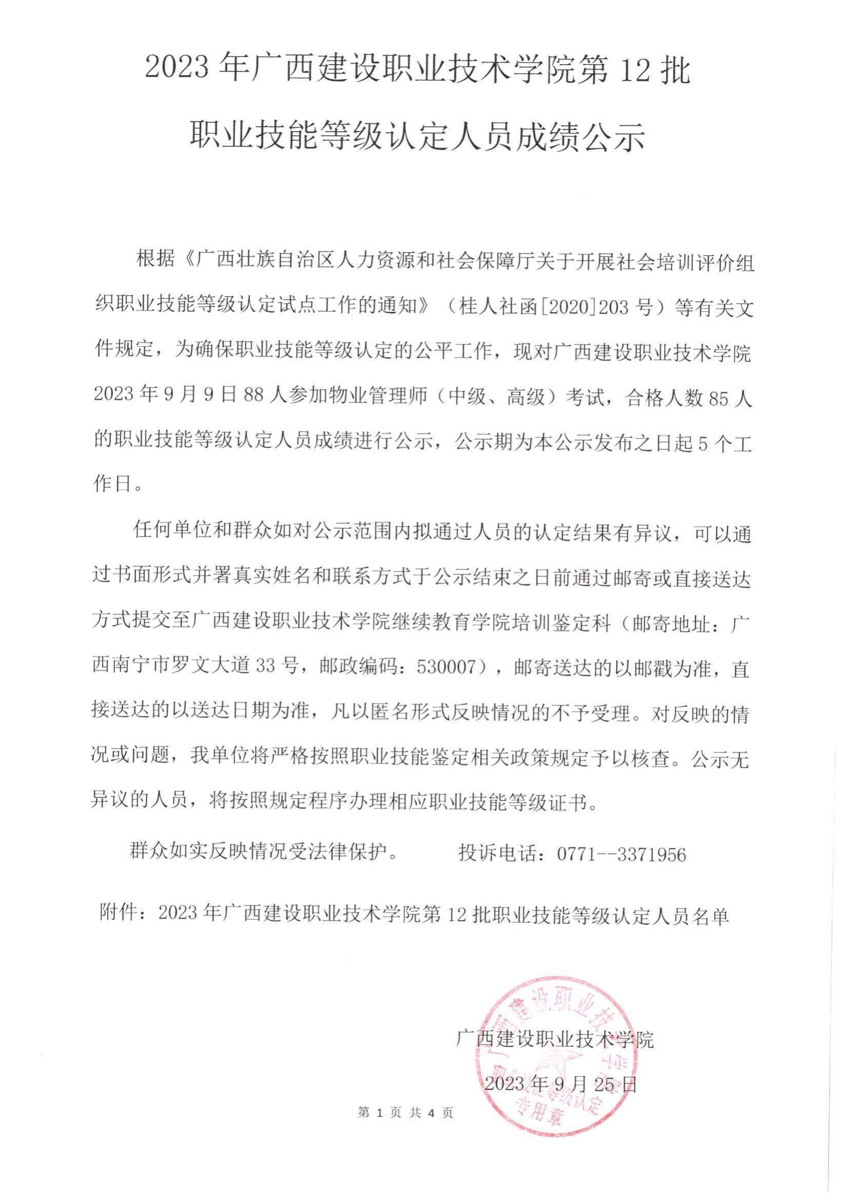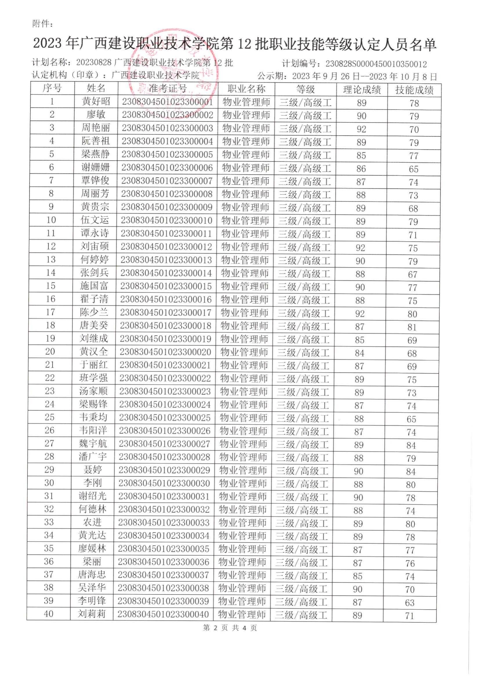 培训信息 当前位置: 首页 >> 培训信息 >> 正文 2023年完美网页版第12批职业技能等级认定人员成绩公示 发布日期:2023-09-25 点击: 附件【2023年完美网页版第12批职业技能等级认定人员成绩公示.pdf】已下载次