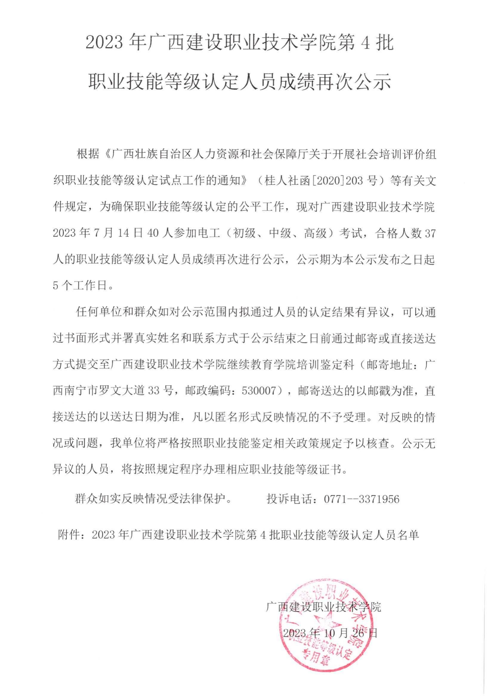 培训信息 当前位置: 首页 >> 培训信息 >> 正文 2023年完美网页版第4批职业技能等级认定人员成绩再次公示 发布日期:2023-10-27 点击: 附件【2023年完美网页版第4批职业技能等级认定人员成绩再次公示.pdf】已下载次